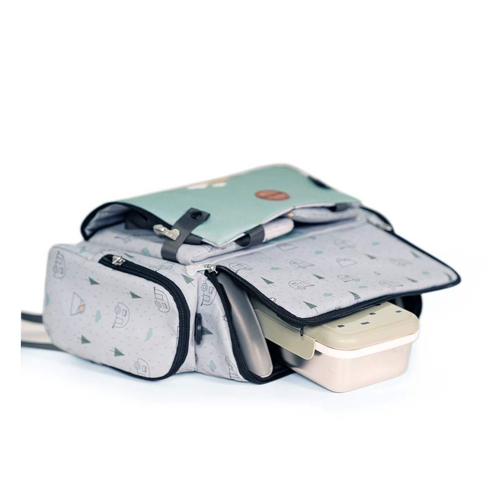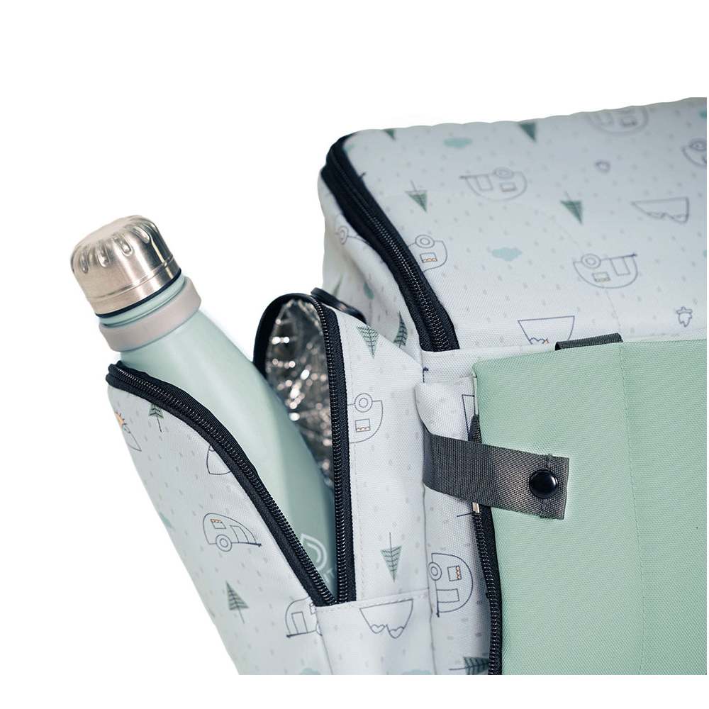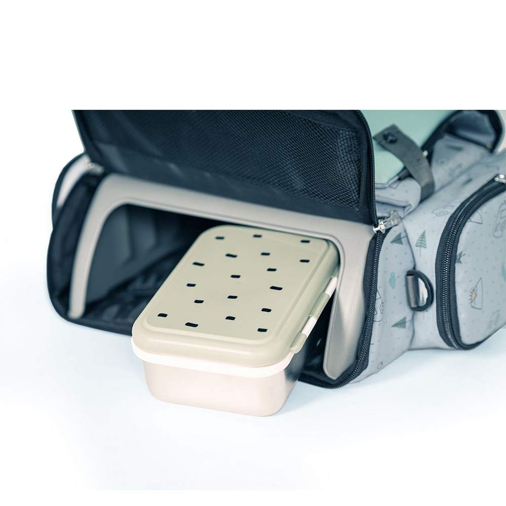 It also features practical pockets for bibs, toys, or accessories, along with a spacious inner compartment to store your baby’s essentials.