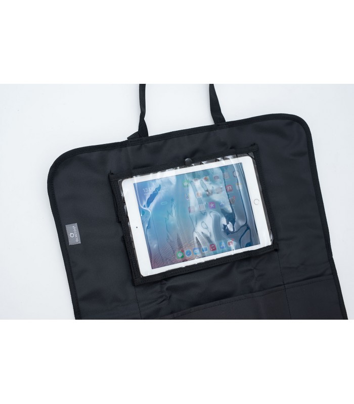 Το προστατευτικό και οργανωτής προσαρμόζεται ανάλογα με τις ανάγκες σας για το κάθισμα ή την πλάτη του καθίσματος του αυτοκινήτουμε. Διαθέτει πρακτικές θήκες για να αποθηκεύετε τα απαραίτητα πράγματα του παιδιού σας ώστε να τα βρίσκεται εύκολα. Επίσης διαθέτει και θήκη για το τάμπλετ με κουμπί για μαγαλύτερη ασφάλεια.