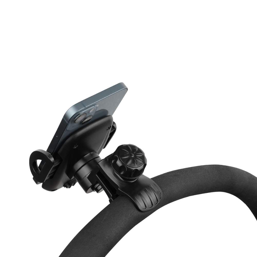 Κρατά το κινητό σας πάντα στη θέση του, ώστε να μπορείτε να βλέπετε οδηγίες, να απαντάτε σε κλήσεις ή να ακούτε μουσική — χωρίς να αφήνετε τα χέρια από το καρότσι.