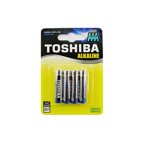 Αλκαλικές μπαταρίες μεγάλης διάρκειας. Άριστη ποιότητα για καθημερινή χρήση. Με την εγγύηση της TOSHIBA. Τύπος: LR03 AAA. 1,5V. Συσκευασία: 4 τεμαχία.