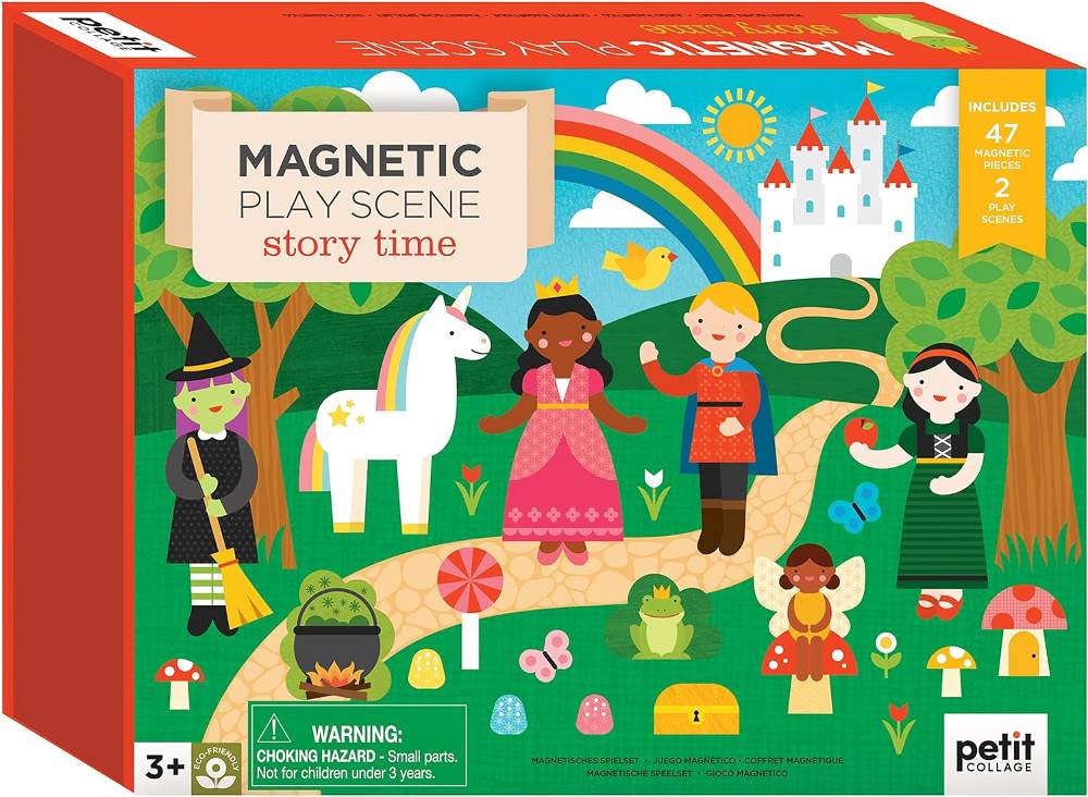 Διακοσμήστε τις σκηνές και αφηγηθείτε μια δικιά σας ιστορία με το Μαγτητικό σετ Story Time από το Petit Collage. Αυτόή η φανταστική κασετίνα παιχνιδιού διαθέτει δύο φόντο και 47 μαγνητικά κομμάτια με φιγούρες από γνωστά και αγαπημένα παραμύθια για να χρησιμοποιήσουν τα παιδιά τη φαντασία τους και να δημιουργήσουν έναν ατελείωτο συνδυασμό φανταστικών ιστοριών.