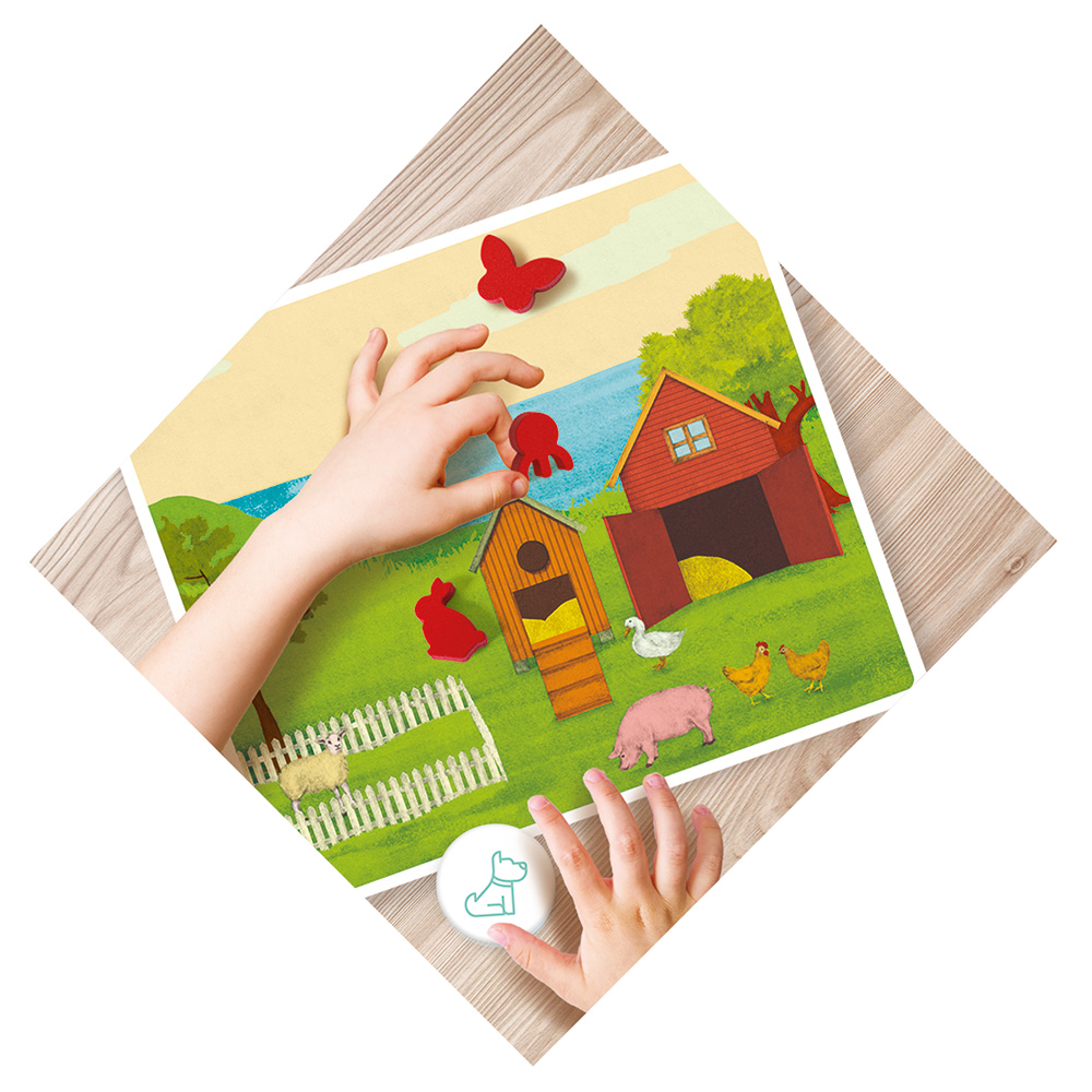 Το κουτί περιέχει 3 διάφανα κύπελλα, 1 σακουλάκι με τα πομ-πομ, 36 αποσπώμενα αντικείμενα από αφρολέξ, 1 τσιμπιδάκι, 6 δίσκους ταξινόμησης από χαρτόνι, 3 ένθετα κομμάτια από χαρτόνι (φίλτρα) για τα κύπελλα, 3 μεγάλες καρτέλες εικόνας από χαρτόνι με 3 διαφορετικά περιβάλλοντα, οδηγίες με προτάσεις για παιχνίδι.