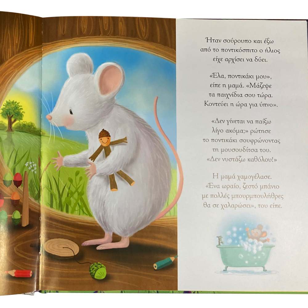 Είναι ώρα για ύπνο, αλλά το ποντικάκι δεν θέλει να κοιµηθεί. Θέλει ακόµα µια ιστορία, ακόµα ένα νανούρισµα, ακόµα µια αγκαλιά. Όλο κάτι ακόµα, για να αργήσει η ώρα του ύπνου. ∆ιάβασε όλα όσα κάνει η µαµά ποντικίνα για να κοιµίσει το ποντικάκι της και να το βοηθήσει να έχει όνειρα γλυκά.