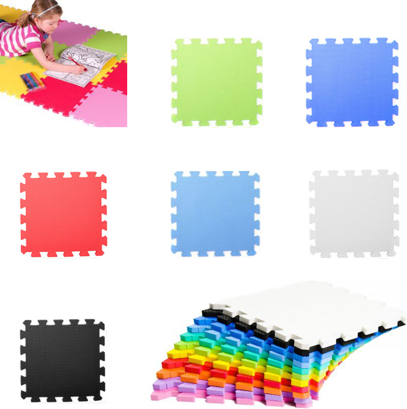 Perfect for play areas and to protect against hard floors. Create your very own puzzle mat, by selecting preferred colour combination. Each square: 30 x 30cm x 1,2cm. Suitable for all ages. Material: EVA foam, non-toxic, odourless, and free of ammonia, latex, phthalates, and other chemicals of concern. Meets European Safety Standards .