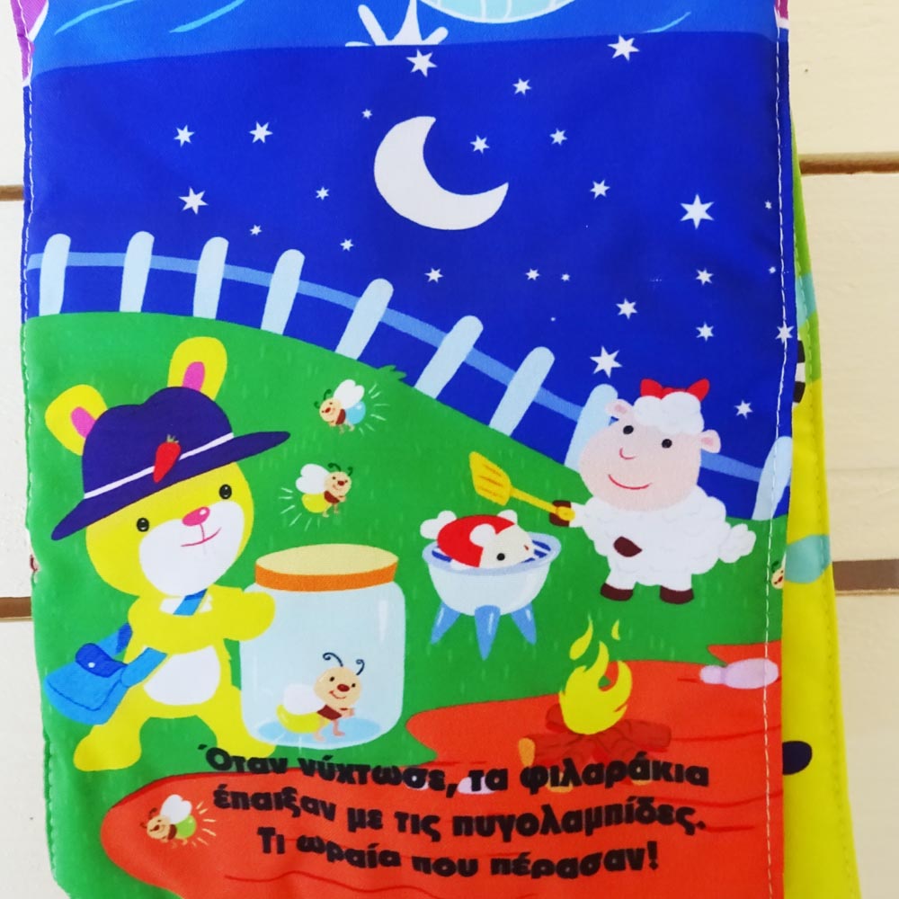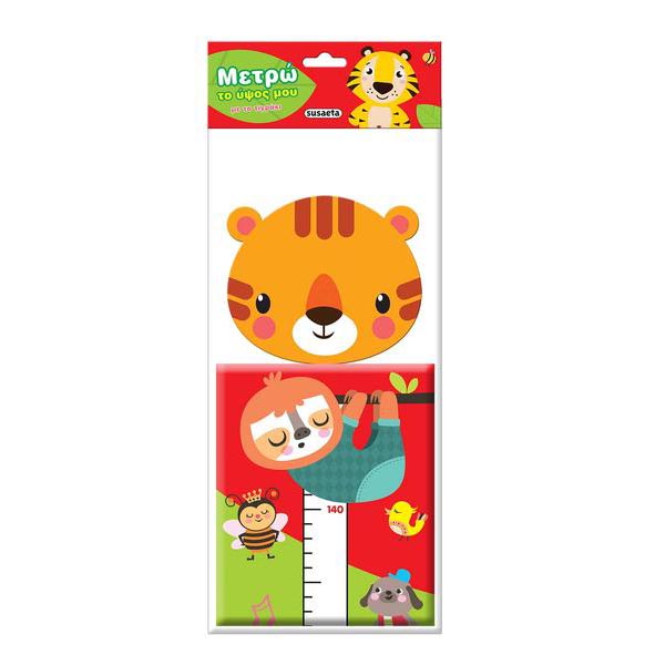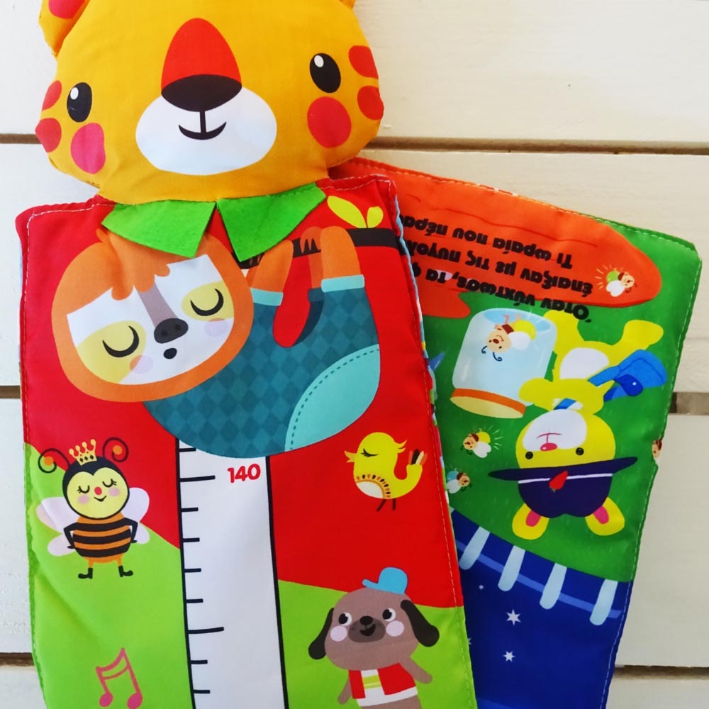 Adorable fabric book which opens up into a height chart. Material: Fabric with light filling. Measures height up to 140cm. Dimensions: 39 x 15cm. With a string loop ready for hanging up. Includes a cute story. Greek text.